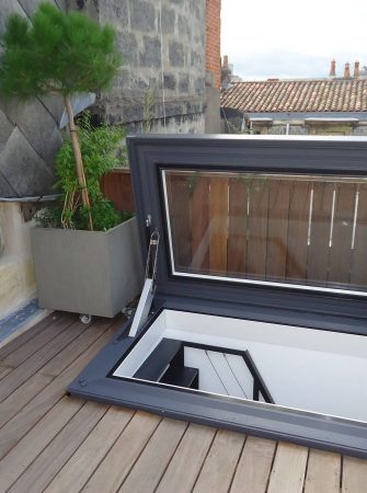 Ejemplo de Skydoor Ejemplo de Skydoor instalado en una azotea sobre una escalera de caracol. Ver imagen Ver producto